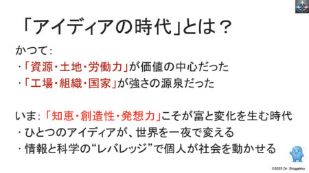 「アイディアの時代」という言葉は、現代の本質を突いた非常にパワフルなキーワードです。